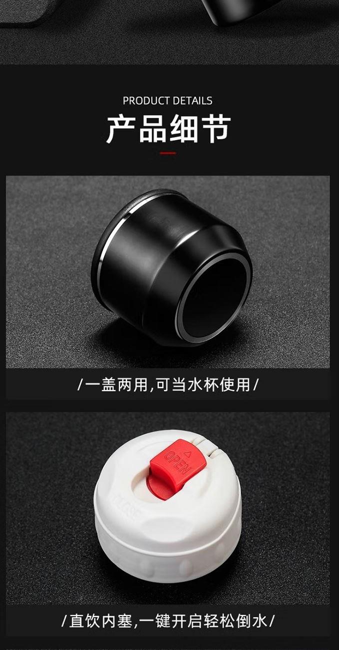 容量:630ml 顏色:白色 黑色 紅色 藍色 純本色(304內(nèi)膽) 尺寸:78*22.8 材質(zhì):304奧氏體不銹鋼內(nèi)膽、食品級PP,PC配件 包裝:單瓦盒