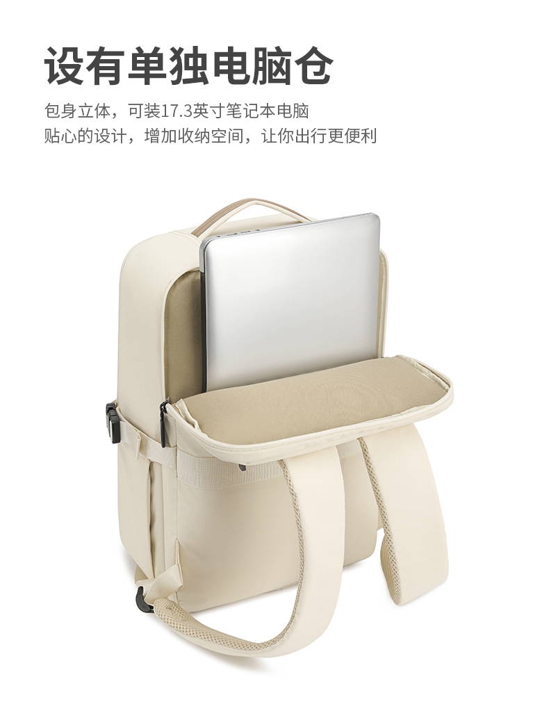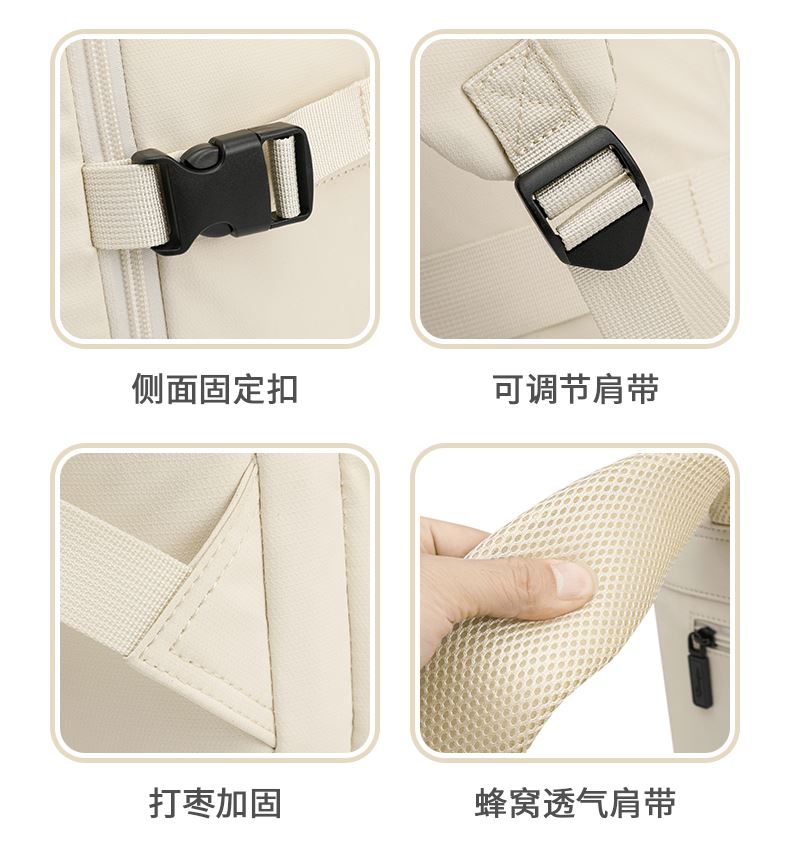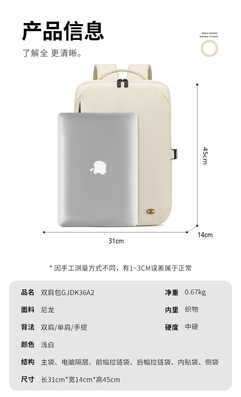 類別:雙肩包 顏色:淺白 面料:織物 里料:織物 閉合方式:拉鏈 尺寸:310*140*450mm 吊牌價:690元 應用場景:日常包 上市時間:2025年秋季 類別:雙肩包 包袋大?。褐邪?適用人群:男女通用