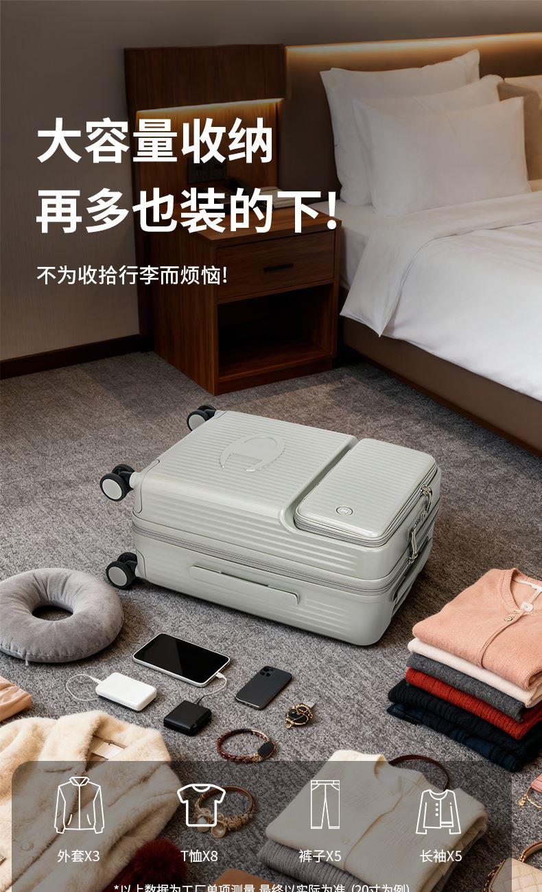 材質(zhì):面料:PC+ABS,里料:織物 尺寸:長32寬28高56cm 特點(diǎn):登機(jī)無憂,輕便靈活 顏色分類:黑色/淺棕 吊牌價(jià) :1250元 適用場景:短途出差、周末游 上市時(shí)間:2025年秋季 類別:行李箱 適用人群:男女通用