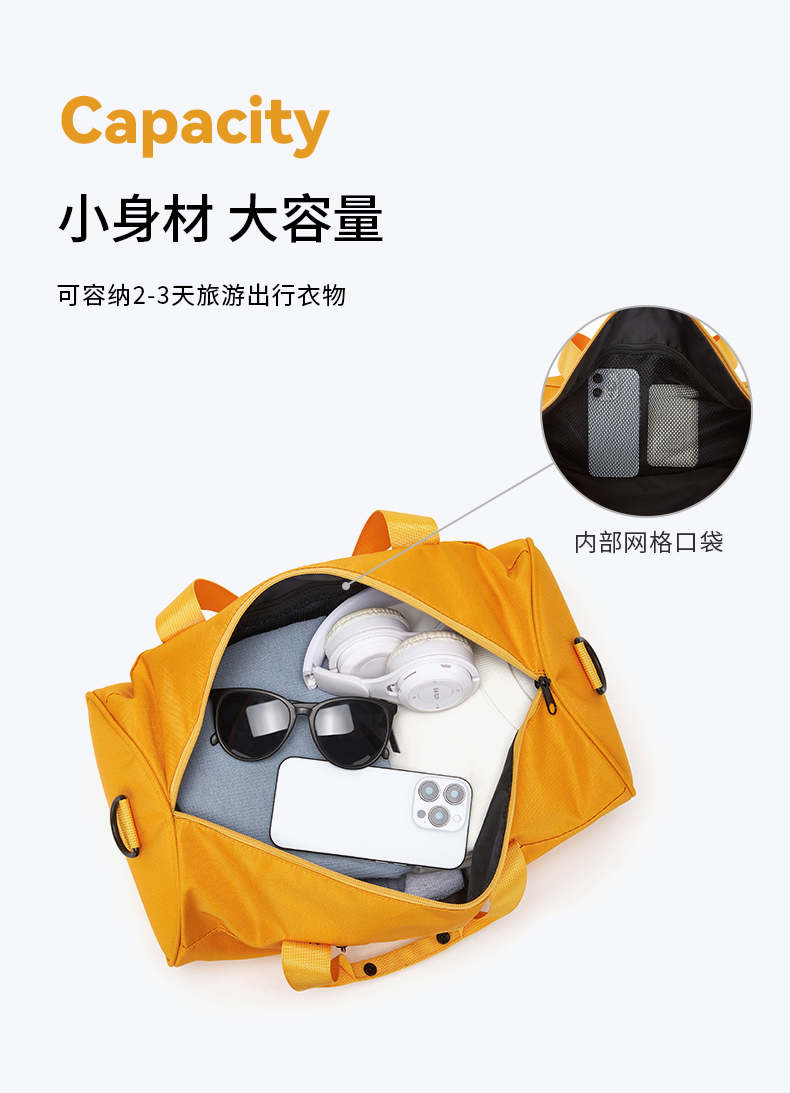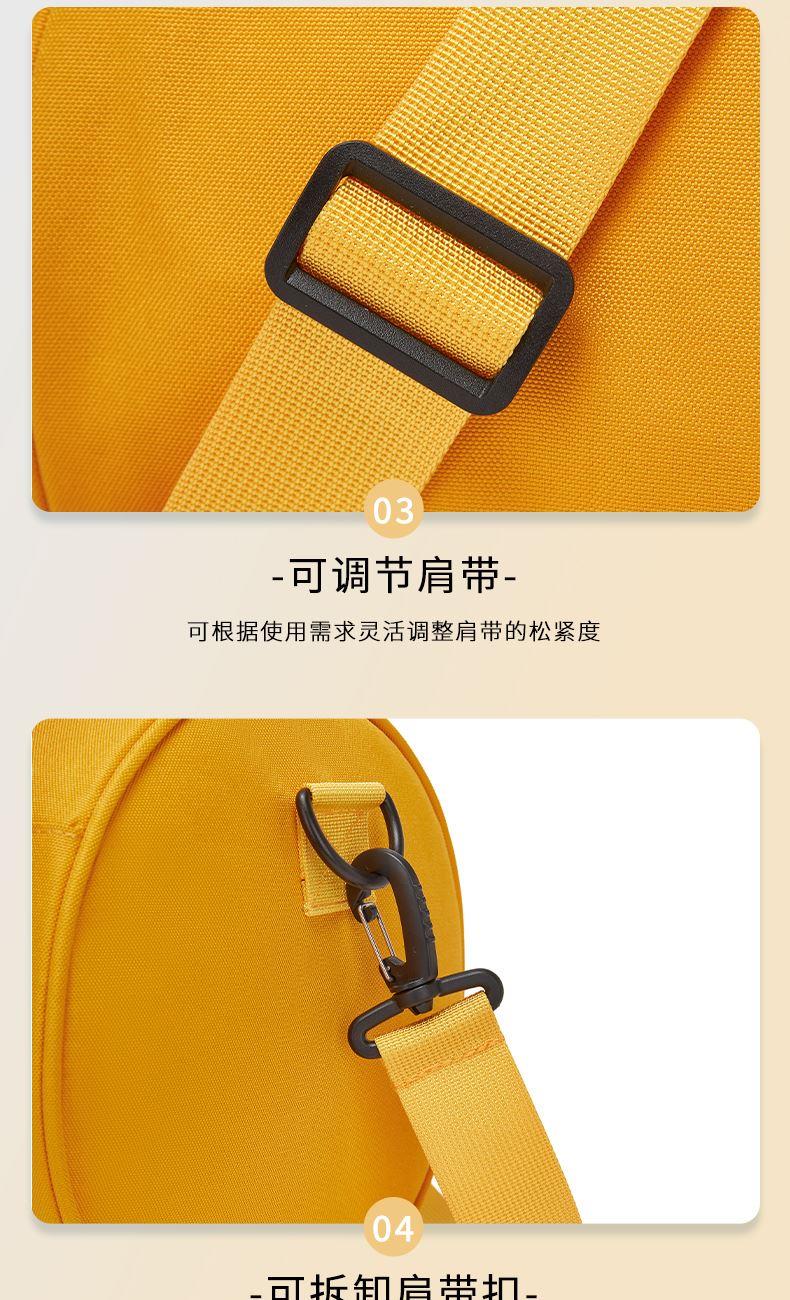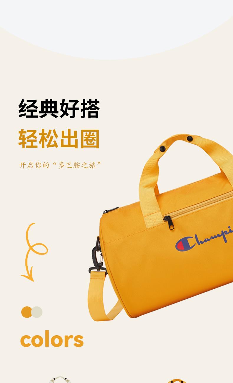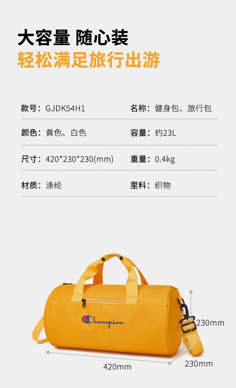 類別:旅行包 顏色:黃色/白色 面料:織物 里料:織物 閉合方式:拉鏈 尺寸:420*230*230mm 吊牌價 :230元 適用場景:日常包 上市時間:2025年秋季 類別:健身包 包袋大?。褐邪?適用人群:男女通用